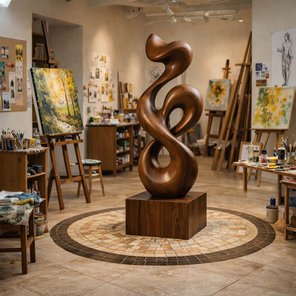 This sculpture is designed for interiors that appreciate craftsmanship, natural materials, and sculptural decor. It transforms any space into a refined artistic environment, adding warmth, movement, and a sense of modern elegance.