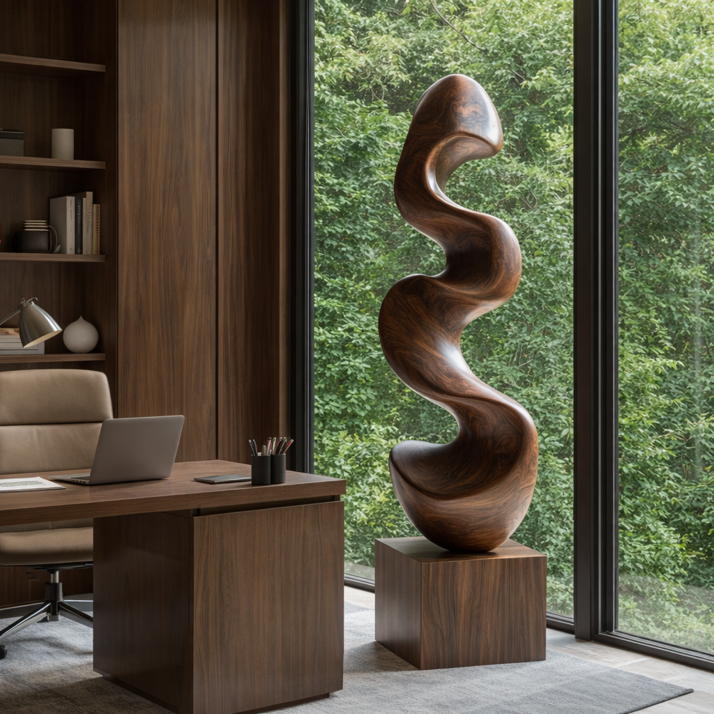 - Materials: Handcrafted from natural wood, showcasing organic grain patterns, layered texture, and subtle tonal variation that give each sculpture its own unique character.