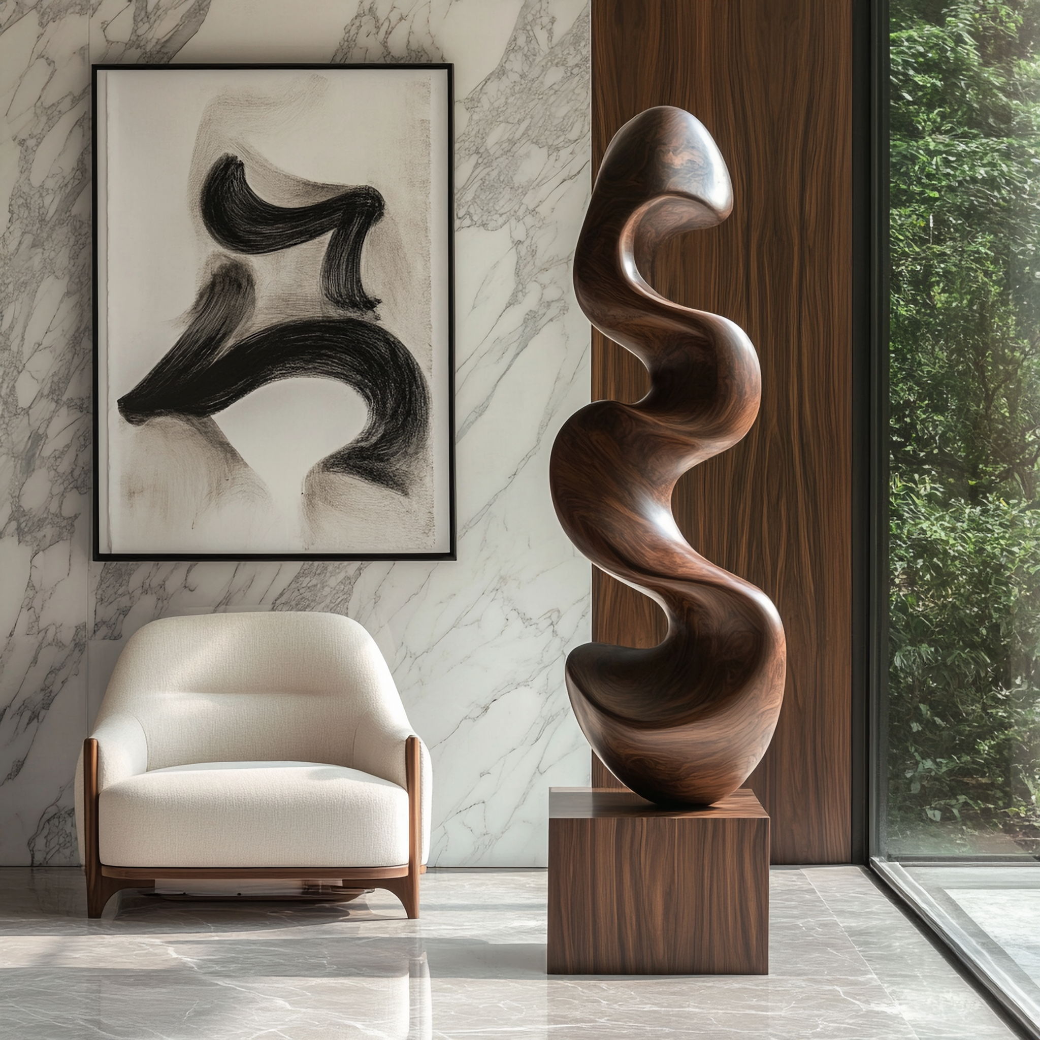 Organic Solid Wood Floor Sculpture for Modern Minimalist Interior brings a sense of movement, balance, and sculptural elegance into contemporary spaces. Defined by its flowing wave-like silhouette and tall vertical presence, this piece creates a refined focal point that feels both natural and architectural. Its graceful form introduces visual rhythm and warmth, making it well suited to interiors that value simplicity, texture, and thoughtful design.