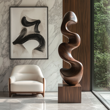 Designed with a fluid, continuous profile, this floor sculpture highlights smooth curves and balanced proportions that create a strong yet calming presence. The wave-inspired silhouette gives the piece a feeling of motion from base to top, allowing it to function as both a decorative object and an artistic statement. Its vertical form adds height and structure to a space without feeling heavy, making it especially effective in open and carefully curated interiors.