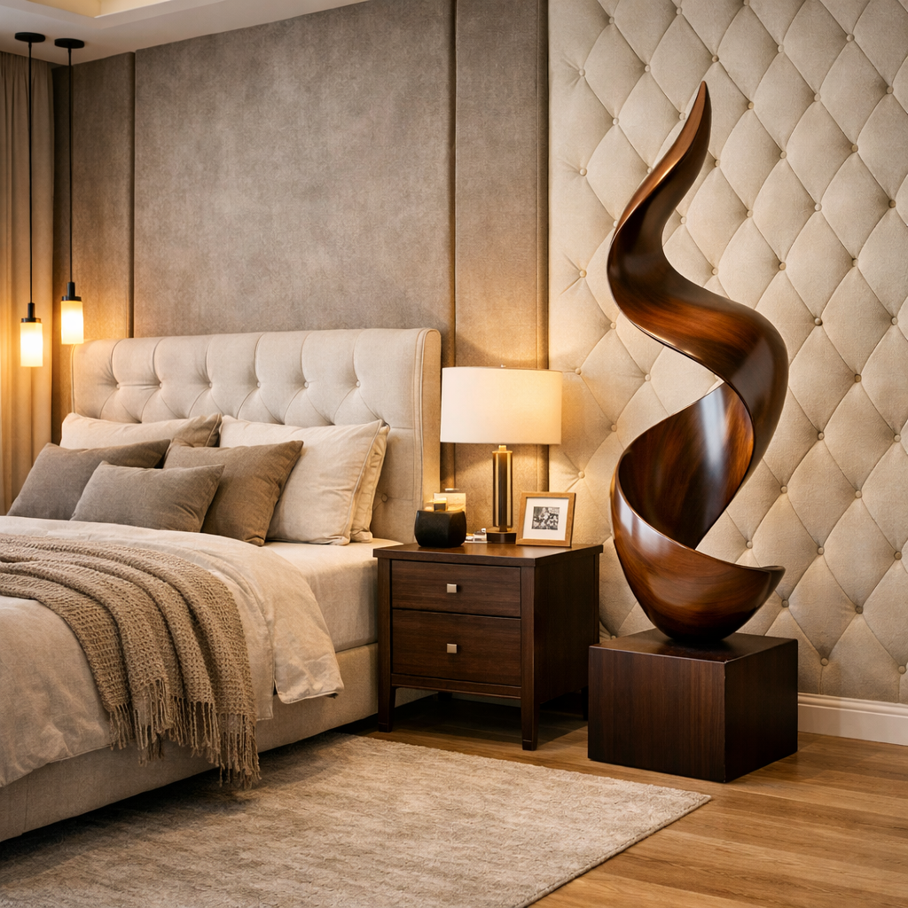 More than decorative art, this handcrafted wood sculpture introduces warmth, motion, and sculptural elegance, transforming any interior into a carefully curated and visually sophisticated space.
