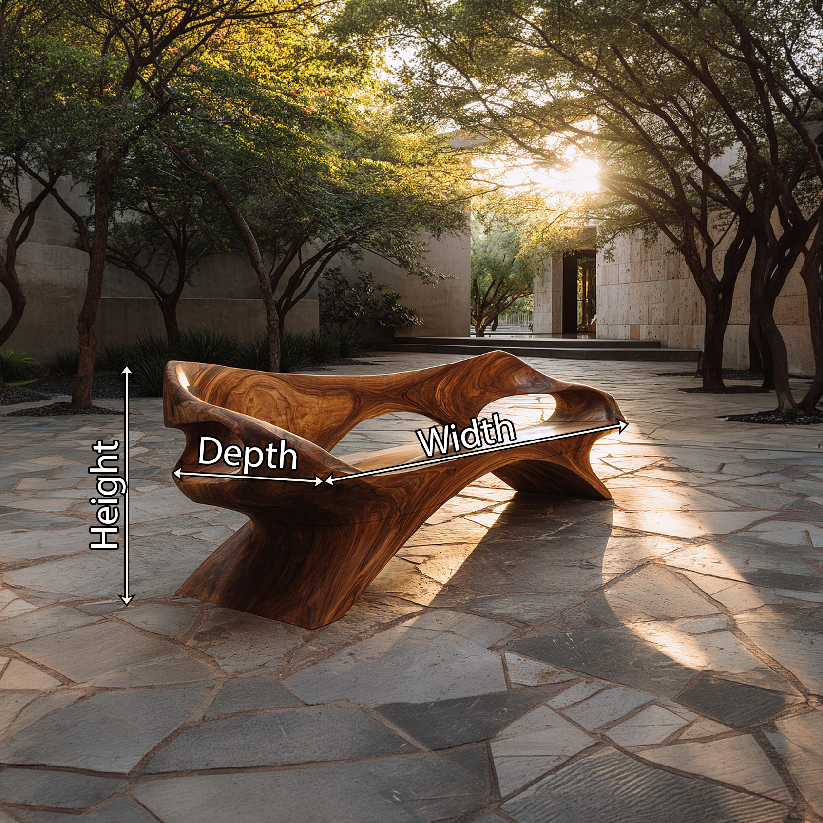 Natural variation in grain, tone, and handcrafted carving gives each piece its own distinct character. More than a seating element, it brings sculptural artistry and enduring natural elegance into the environment.