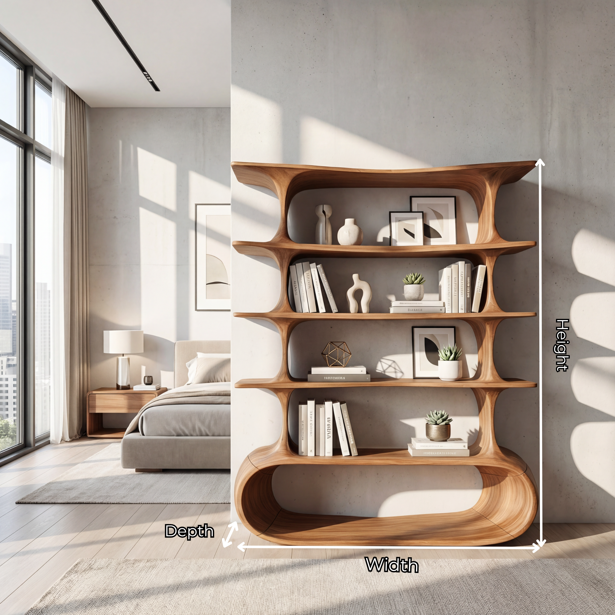 Bring structure and sculptural elegance into your space with our Modern Solid Wood Bookshelf With Balanced Tiered Sculptural Frame. Designed with clean horizontal tiers supported by softly curved forms, this piece combines functional storage with refined architectural presence. The natural wood grain enhances its warmth, making it a timeless addition to modern interiors.