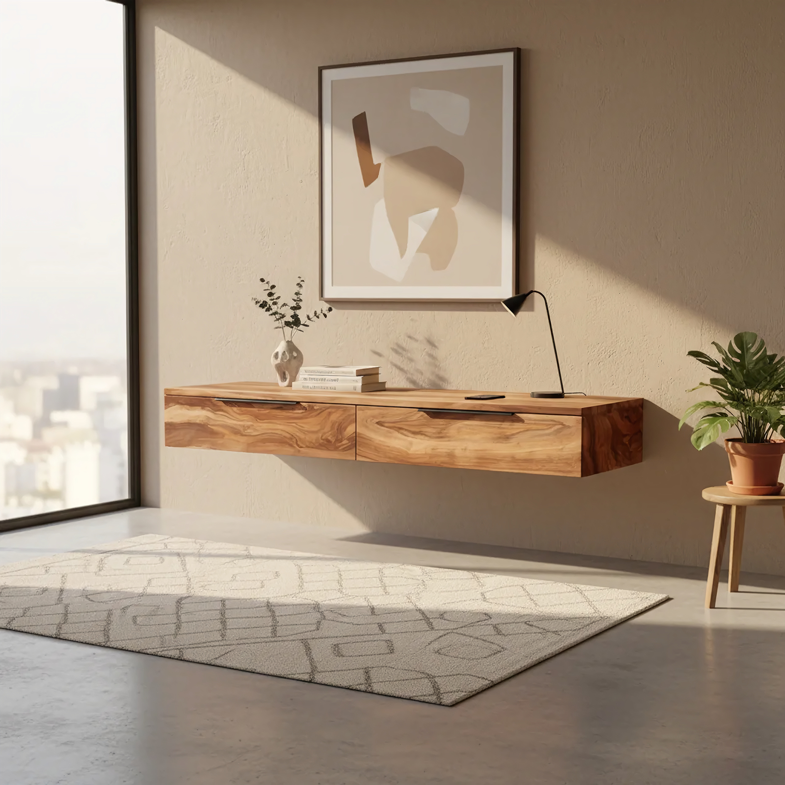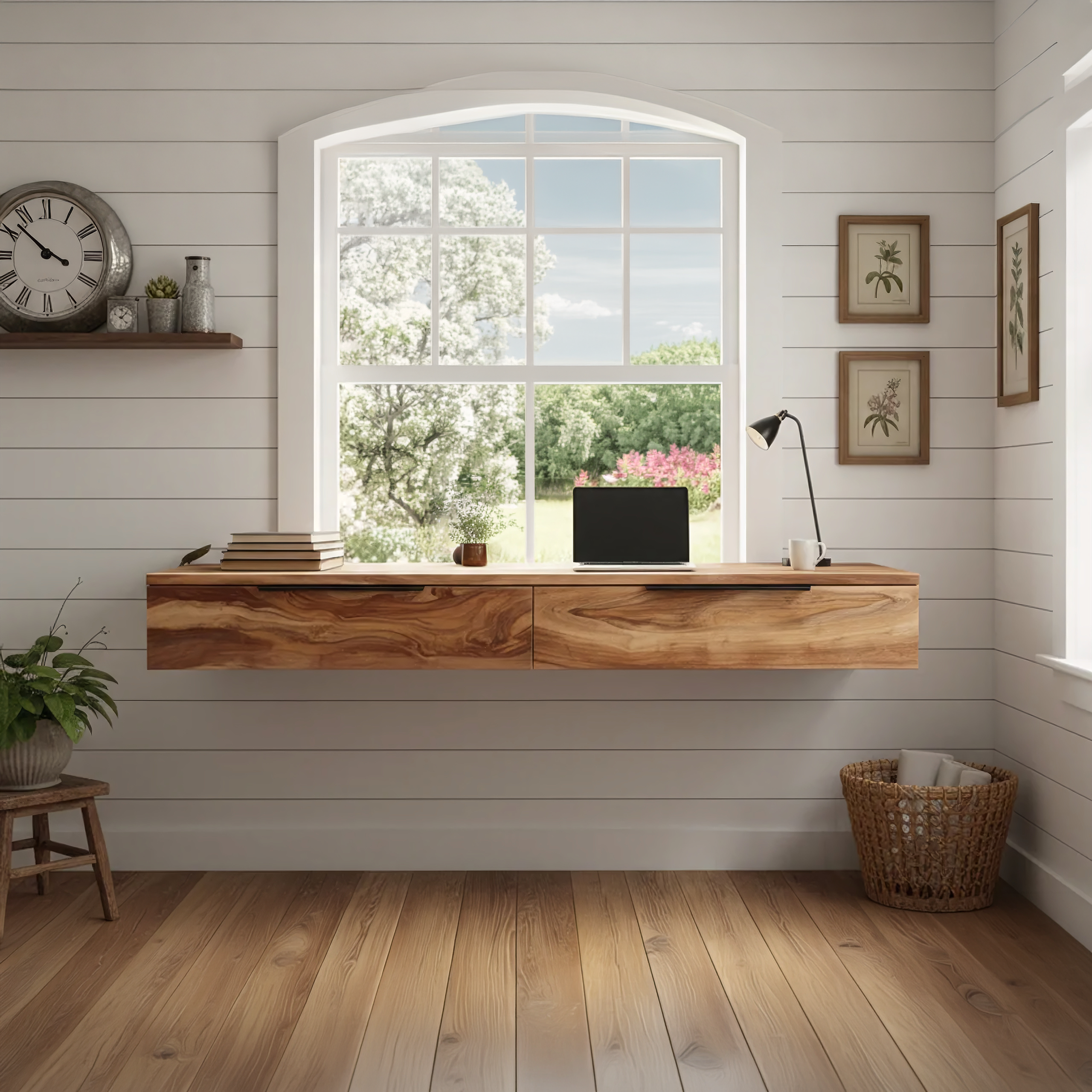Organic Solid Wood Floating Desk with Sculptural Grain Design
