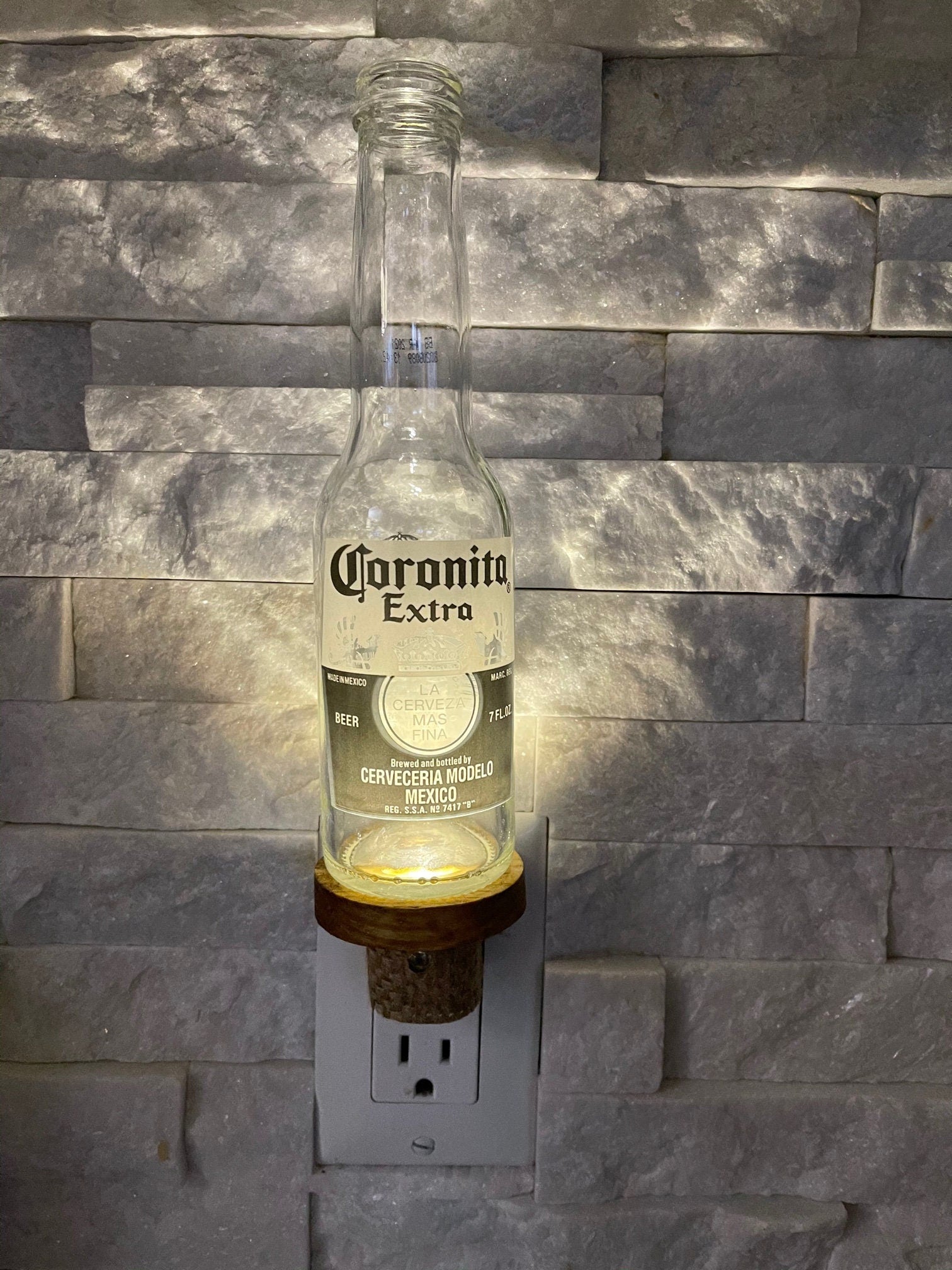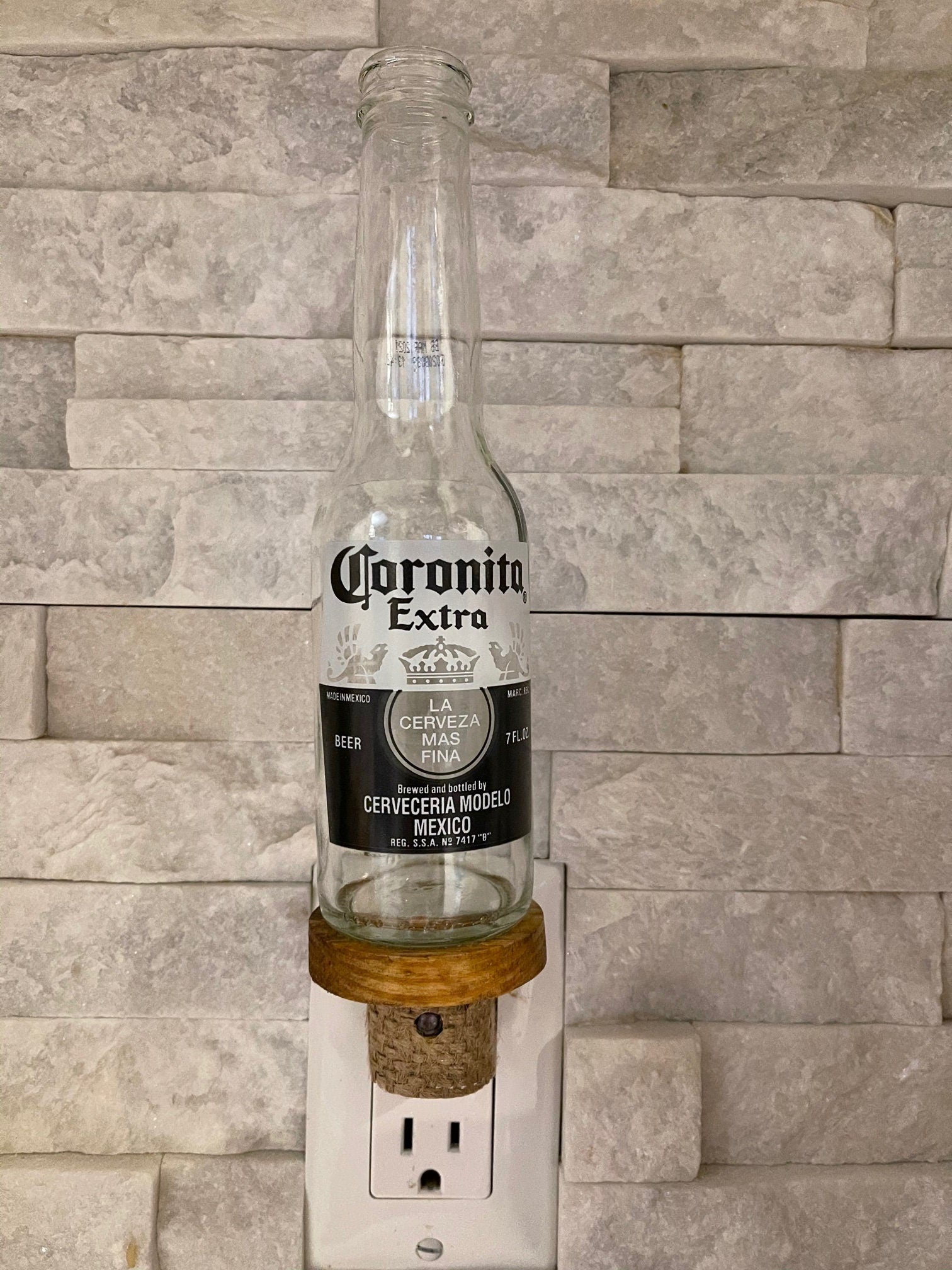Our nightlight is made from recycled 7 oz Corona bottles, giving each piece a unique and rustic charm.