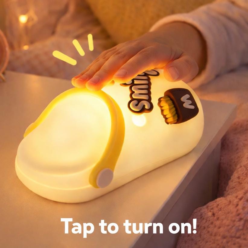 This adorable Crocs-style tap night light turns on with a gentle tap π, filling the room with a warm, soothing light. Cute, cozy, and calming, itβs more than a lamp β itβs a bedtime companion.