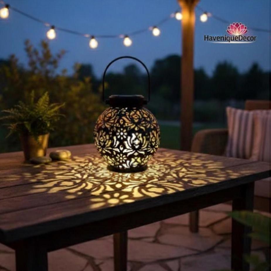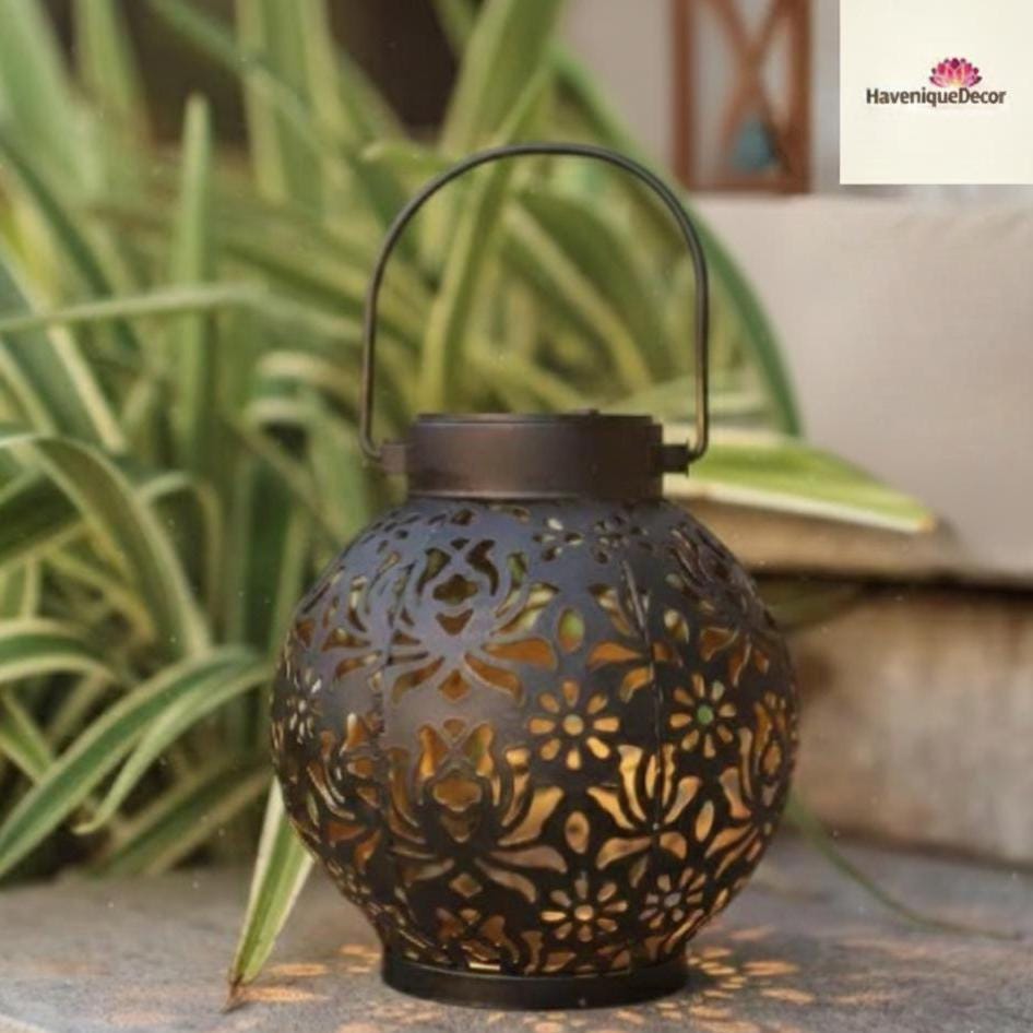 Waterproof Solar Garden Lantern with Floral Steel Design for Pathway and Patio Lighting