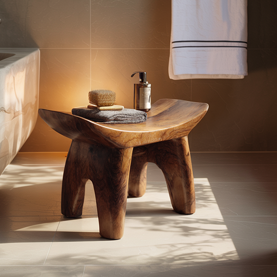 Elevate your bathroom with the Contoured Shower Stool Natural Wood Bathroom Seating Sculptural Form, a refined piece that blends sculptural beauty with everyday comfort. Crafted from natural wood, this stool features a softly contoured seat designed to support a relaxed sitting experience. Its warm tones and organic textures create a calming, spa-like atmosphere while enhancing the visual appeal of modern interiors.