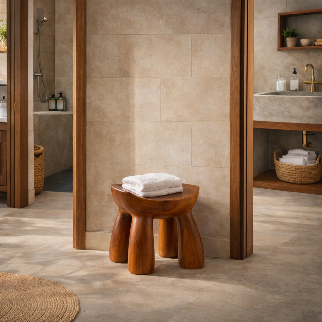 Each shower bench is individually handcrafted by skilled artisans, reflecting careful attention to detail in every curve, surface, and finish. The smooth construction and sturdy form demonstrate expert woodworking and a strong appreciation for natural materials. Built to combine strength with sculptural elegance, this handcrafted piece offers both functional support and enduring beauty for years to come.