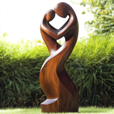 Abstract Couple Wooden Sculpture Romantic Solid Wood Art Statue
