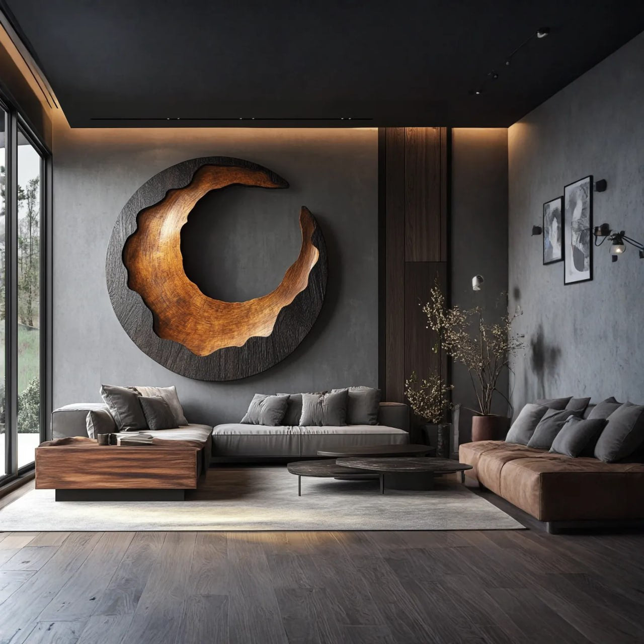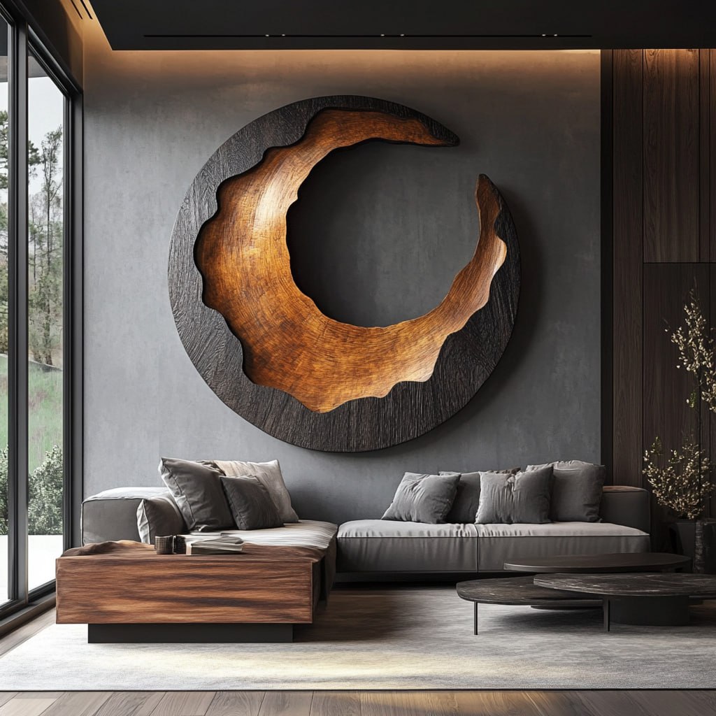 Perfect for living rooms, lounges, bedrooms, offices, or gallery-style interiors, this large round wood wall decor creates a strong visual statement without overwhelming the space. The organic modern design pairs beautifully with minimalist furniture, stone textures, neutral fabrics, and warm lighting, adding character while keeping the atmosphere calm and sophisticated.