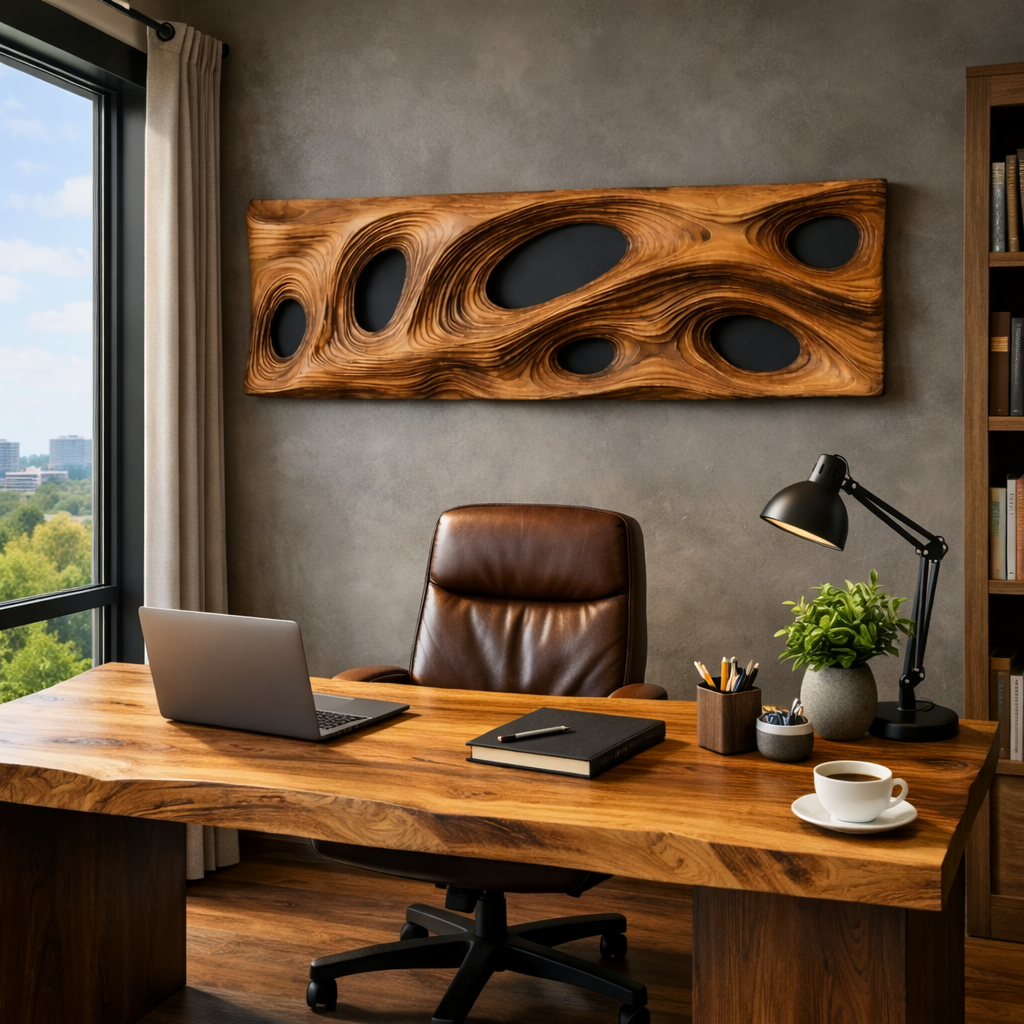- Materials: Handcrafted from natural wood, showcasing rich grain patterns, layered texture, and subtle tonal variation that give each panel its own distinct character.