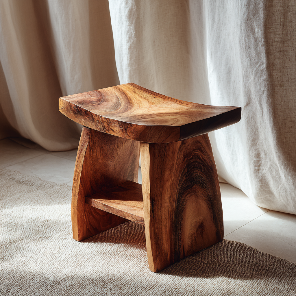 Made from natural wood, each stool showcases unique grain patterns and tonal variations that bring depth and character to your space. The organic qualities of the material ensure that every piece is one of a kind, adding authenticity and warmth to your bathroom interior.