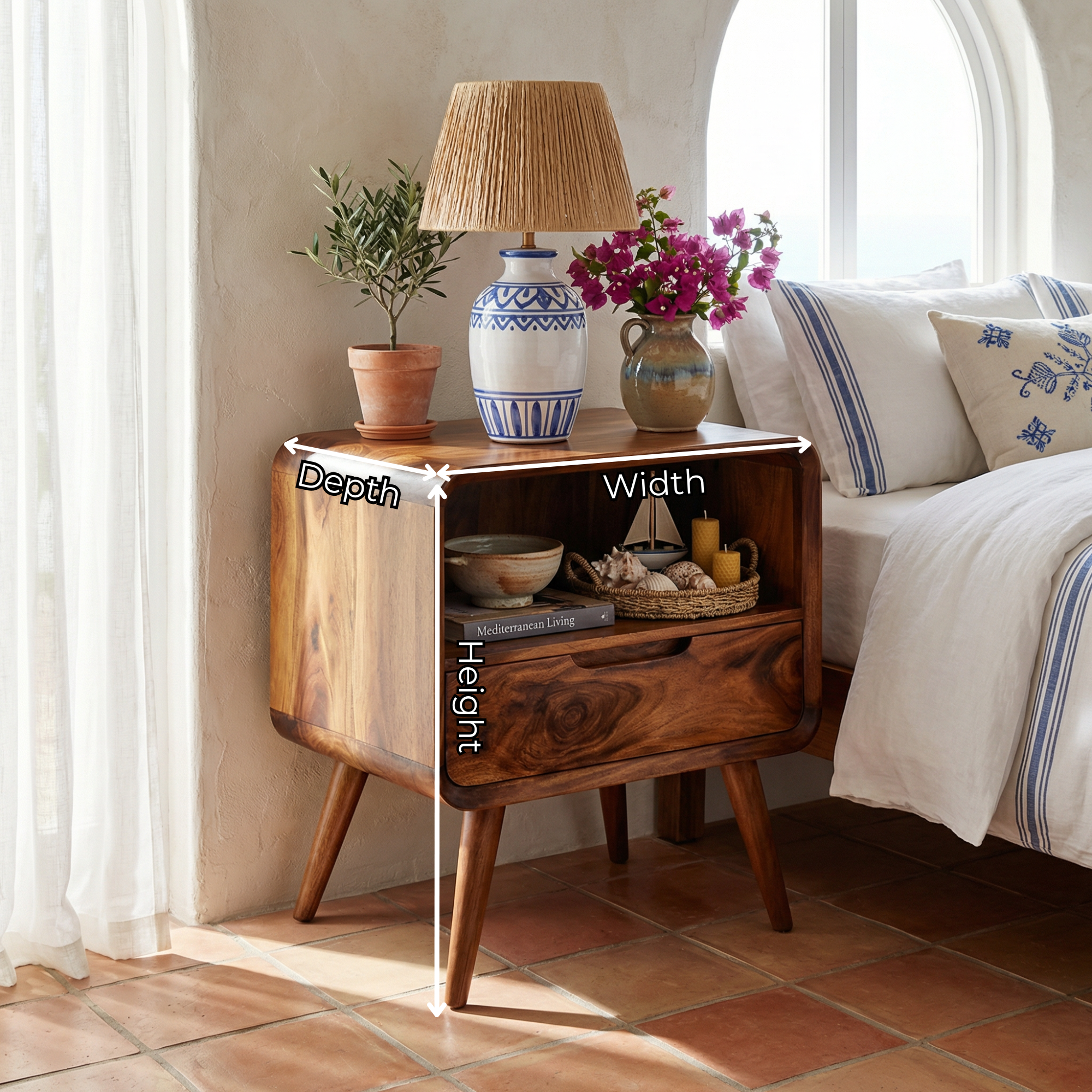 - Perfect as a bedside table for lamps, books, and daily essentials