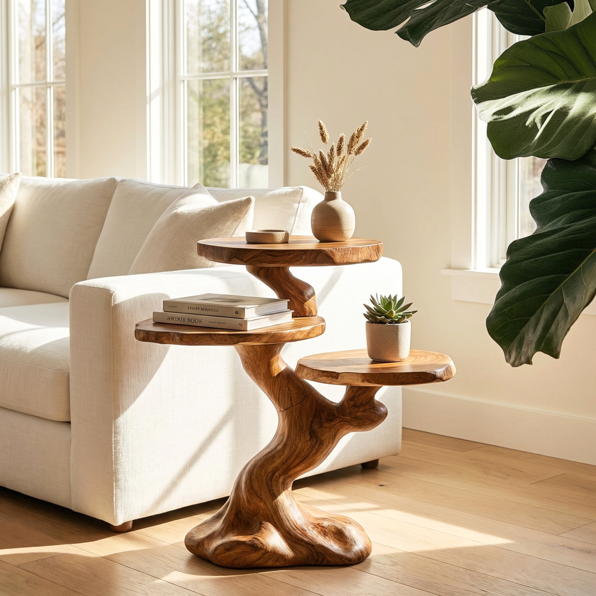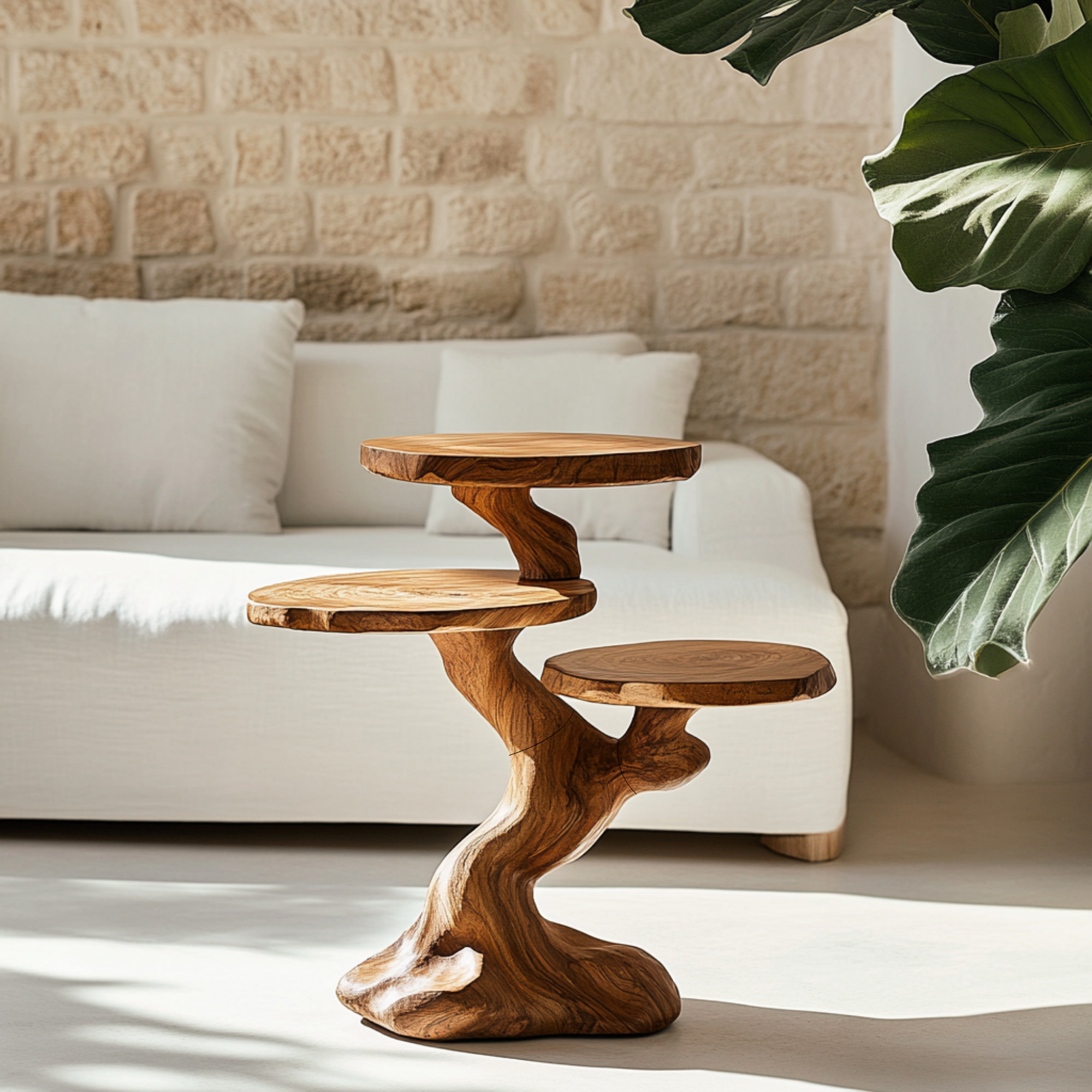 Create a refined and artistic accent with our Organic Sculpted Side Table with Tiered Round Platforms, designed to bring together natural form and practical display. Its flowing base and layered surfaces introduce movement, dimension, and a calm natural presence to modern living spaces.