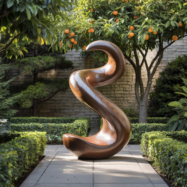 A beautifully flowing sculpture handcrafted from natural solid wood, designed to bring organic elegance and sculptural movement to both indoor and outdoor spaces. The smooth S-shaped curve creates a sense of balance and fluidity, giving the piece a natural presence that feels inspired by wind, water, and natural forms. Its rounded silhouette makes it visually soft yet striking, allowing it to stand as a focal point without feeling heavy.