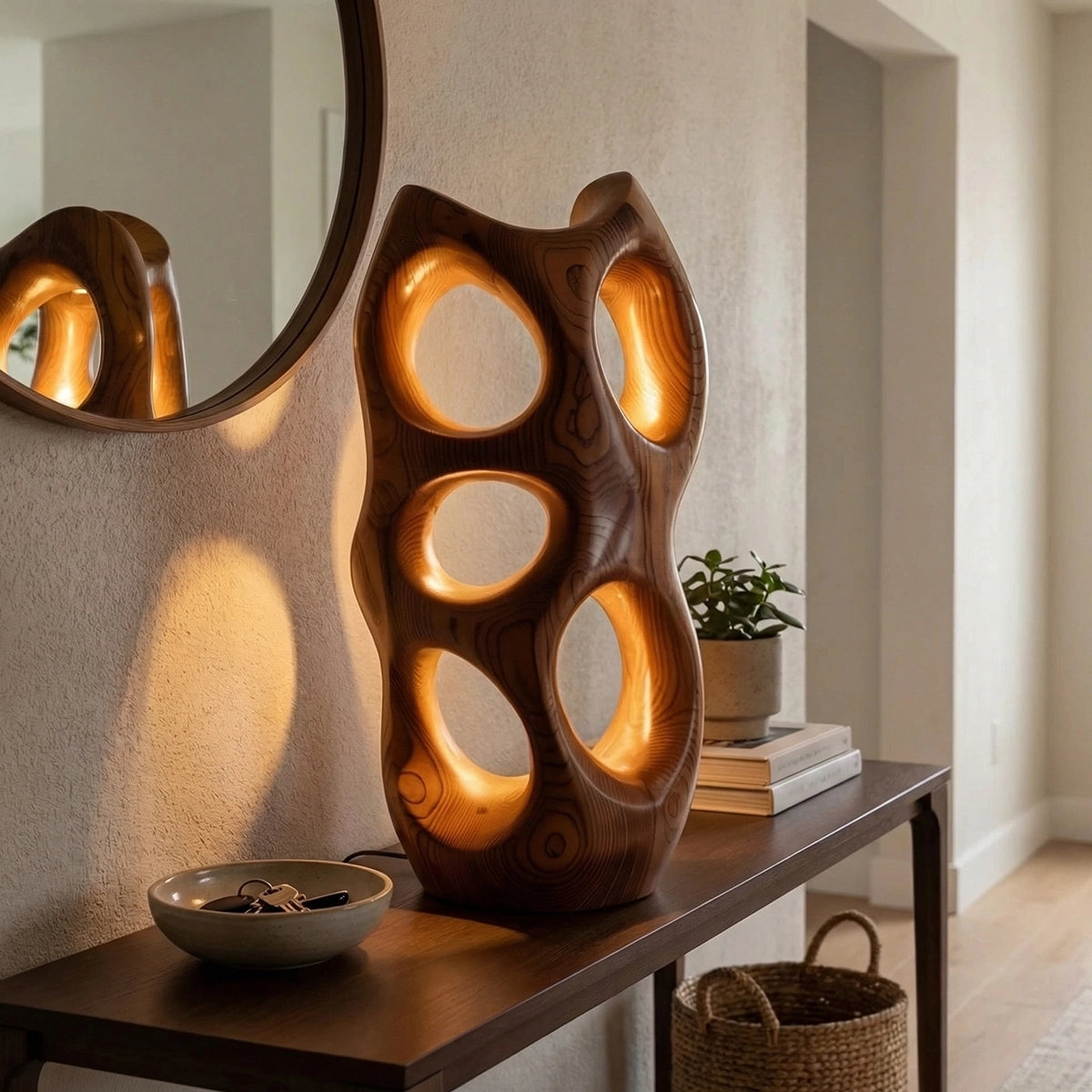 Organic Wood Accent Lamp with Multi-Opening Sculptural Glow