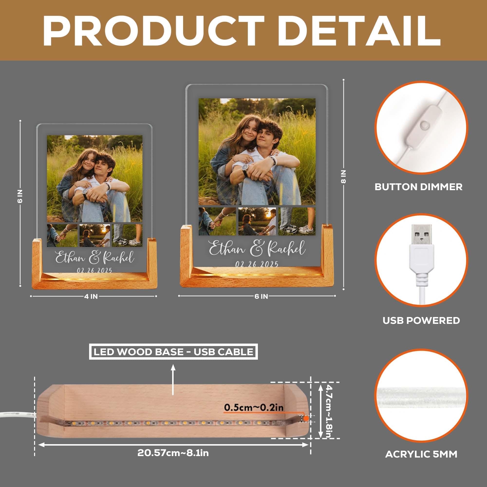 Personalized Photo LED Night Light, Custom Photo Night Light Plaque, Couple Photo Lamp, Anniversary Gift, Family Photo Gift, Birthday Gifts