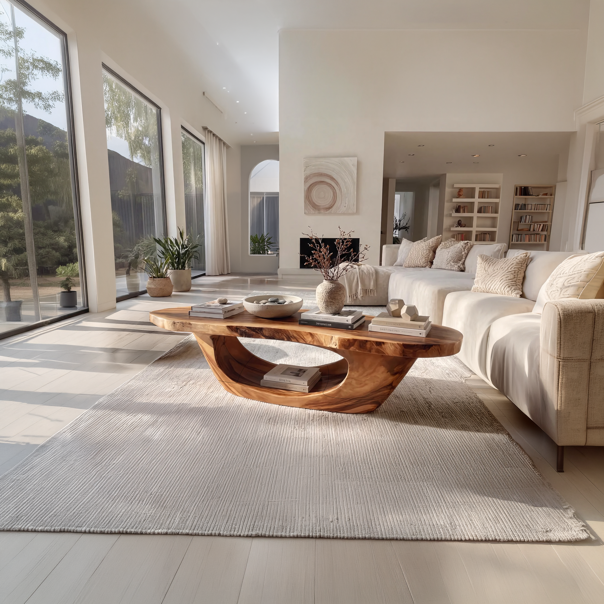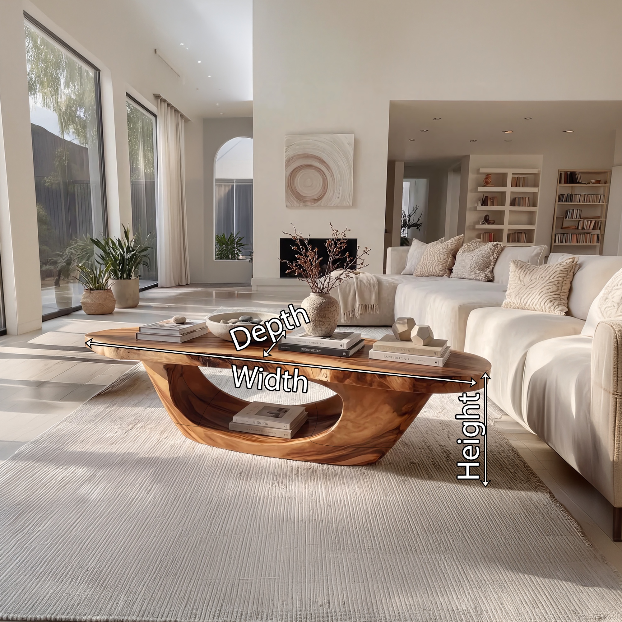 The Sculptural Oval Coffee Table with Open Curve Base introduces a fluid and architectural presence into the living space. Its elongated oval top is complemented by a continuous, curved base that forms a smooth open silhouette, creating a sense of movement and lightness. Designed to balance artistic form with everyday usability, this table serves as both a functional surface and a refined focal point.