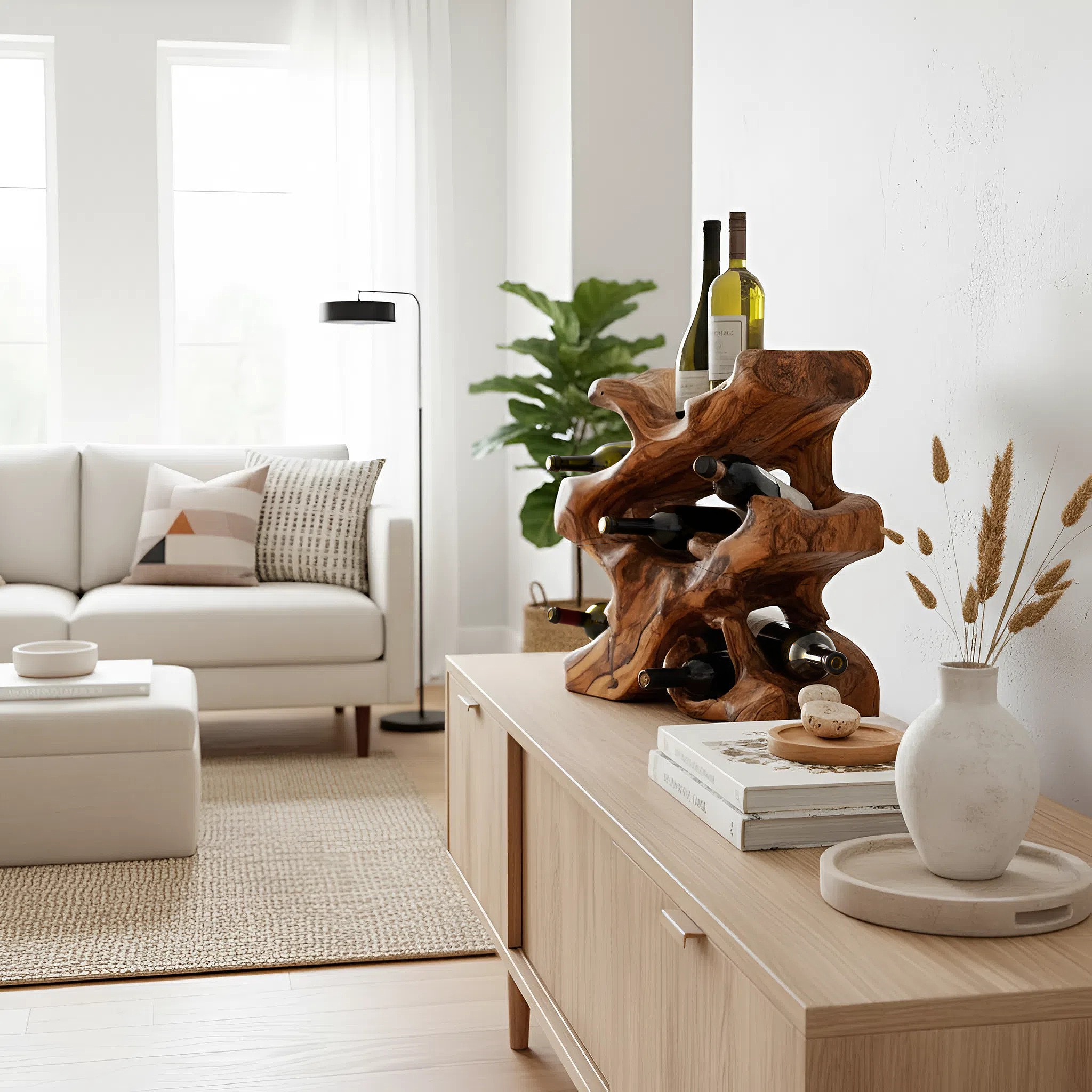 Enhance your space with our Sculptural Solid Wood Wine Rack for Modern Kitchen Display, a refined storage piece designed to bring together artistic form and everyday function. With its flowing silhouette, open structure, and sculptural presence, this wine rack transforms bottle storage into a visually striking display while adding warmth and natural texture to the interior. Its balanced design allows it to serve as both a practical organizer and a decorative focal point within modern kitchens and curated living spaces.