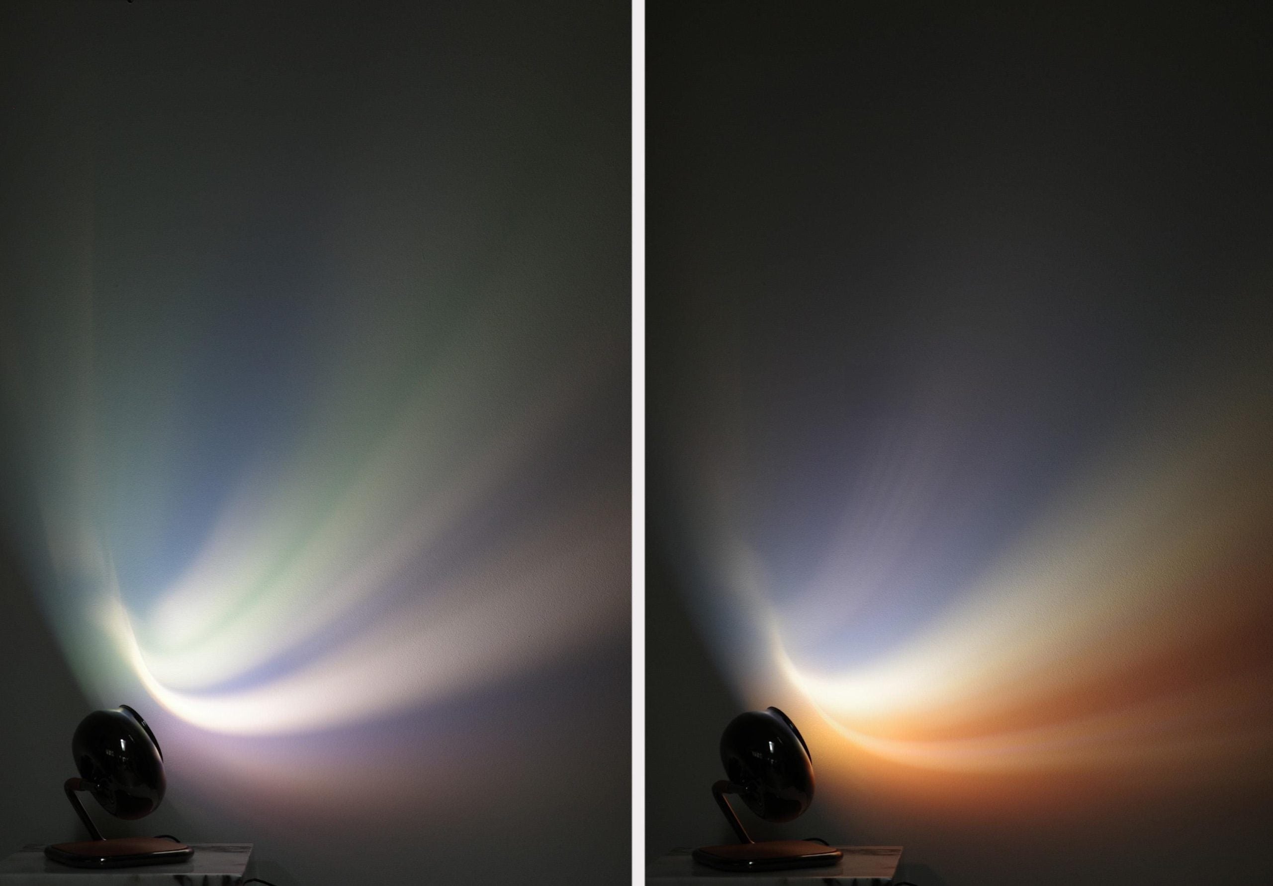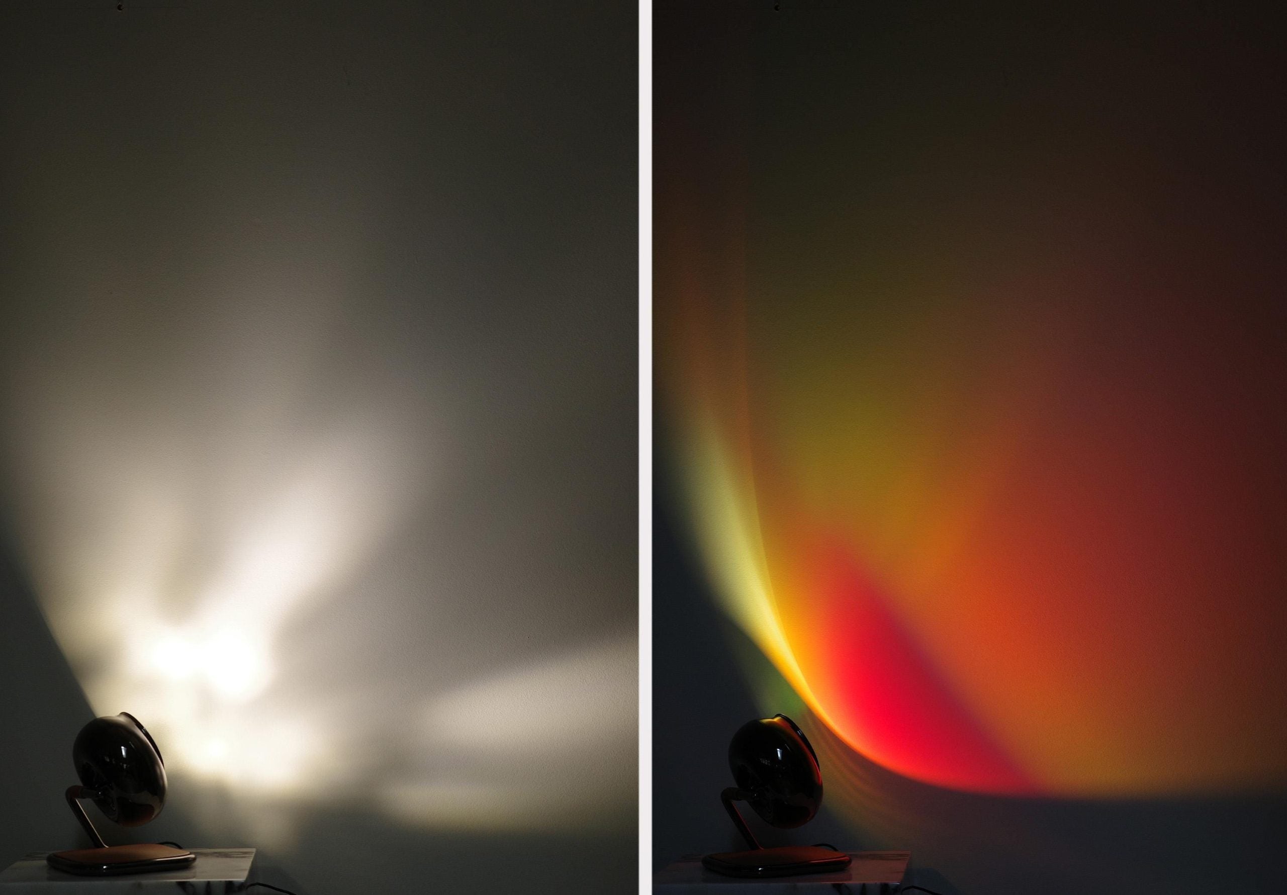 Creates mesmerizing rainbow sunset gradients that turn plain walls into vibrant visual displays.