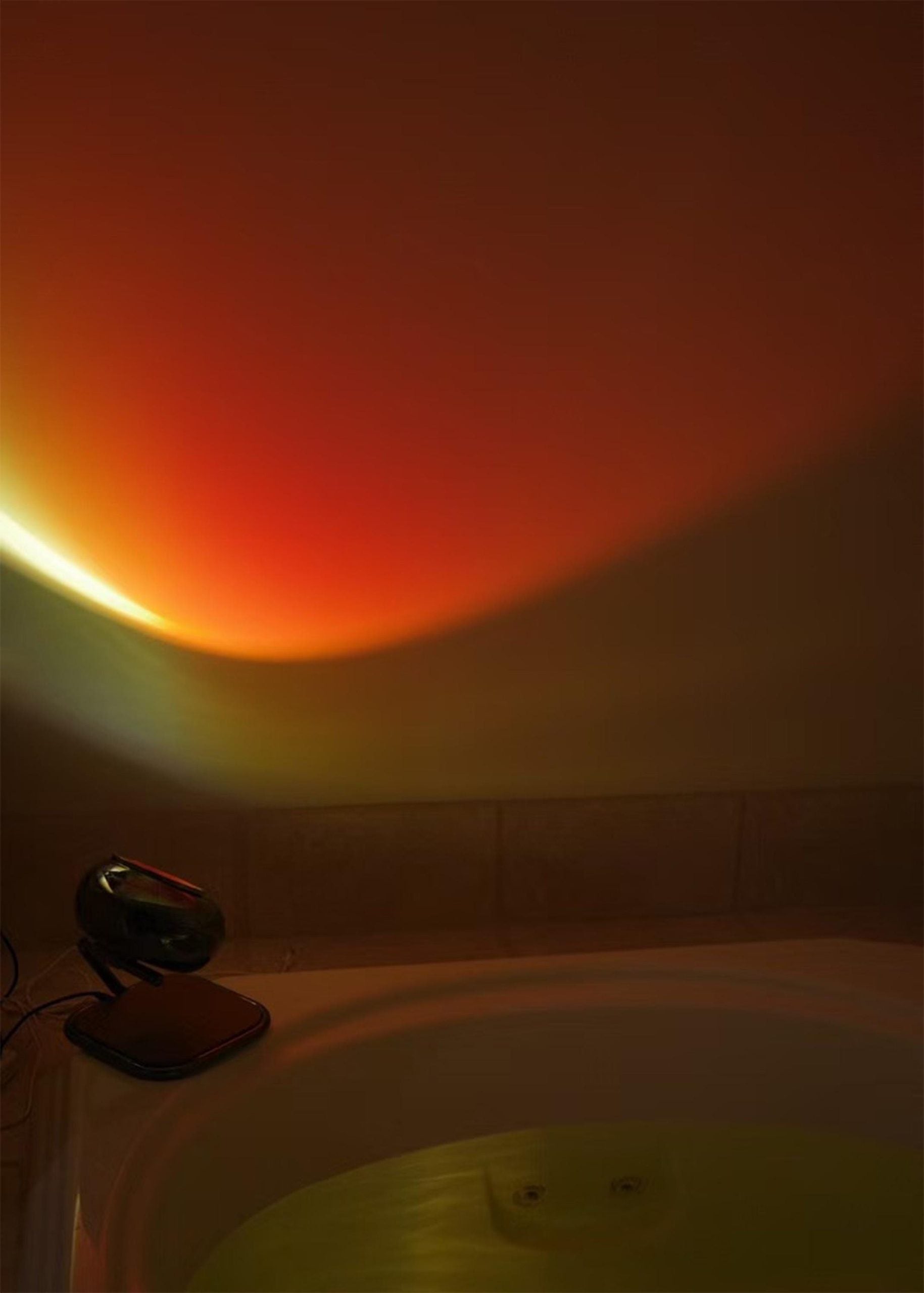 Transform any room with this stunning rainbow projection lamp that casts vibrant, sunset-like color gradients onto your walls and ceiling.