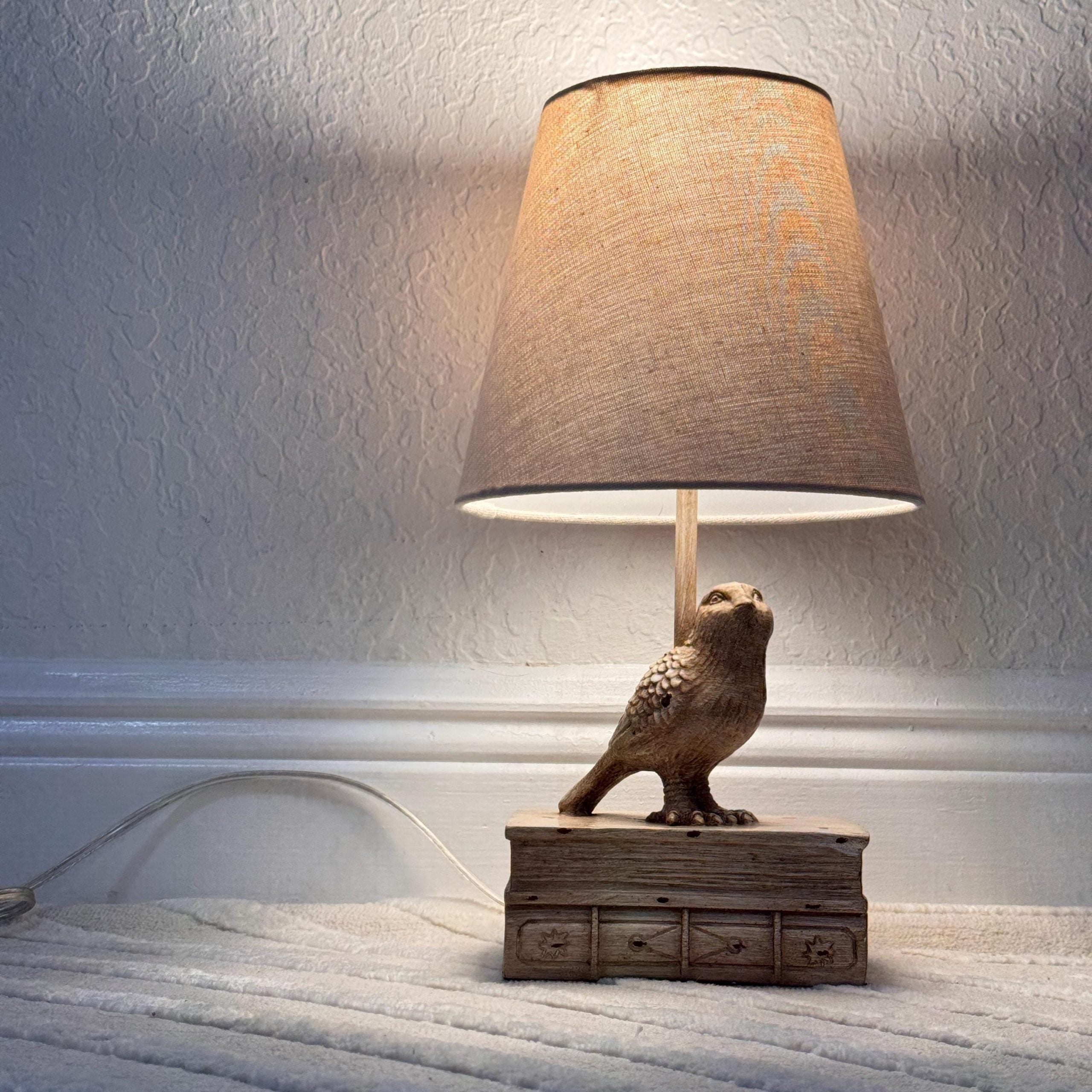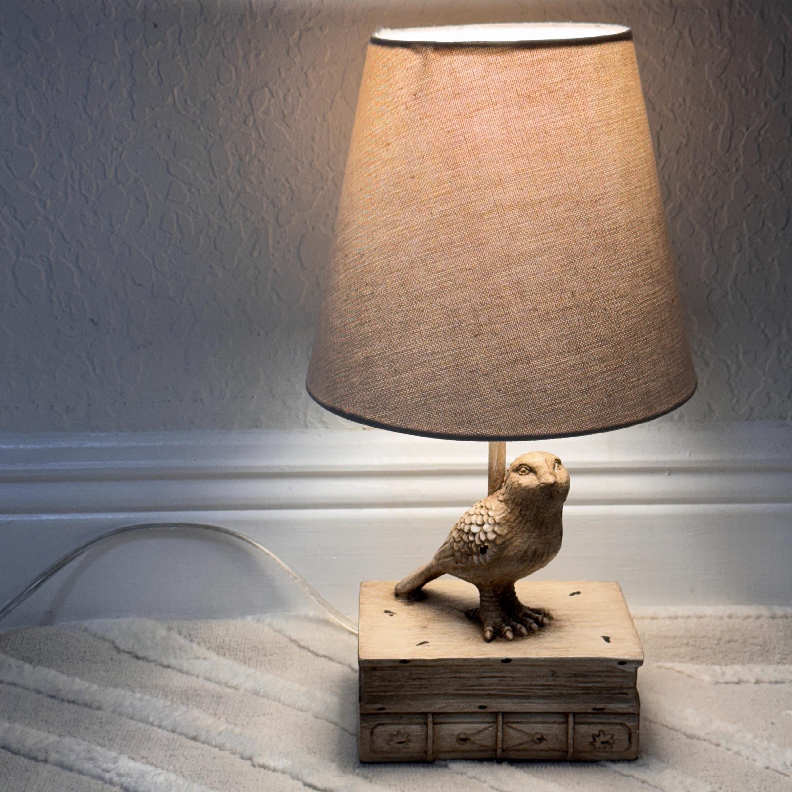 Vintage Owl Table Lamp, Restored Ceramic Bird Figurine, Handmade Dresser Base, Beige Shade Lamp 15'' Bedside Bird Lamp, Bestseller Gift Lamp
